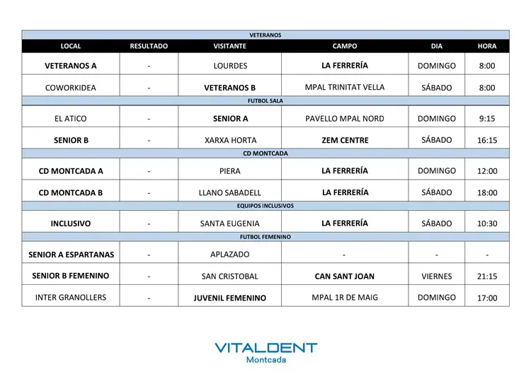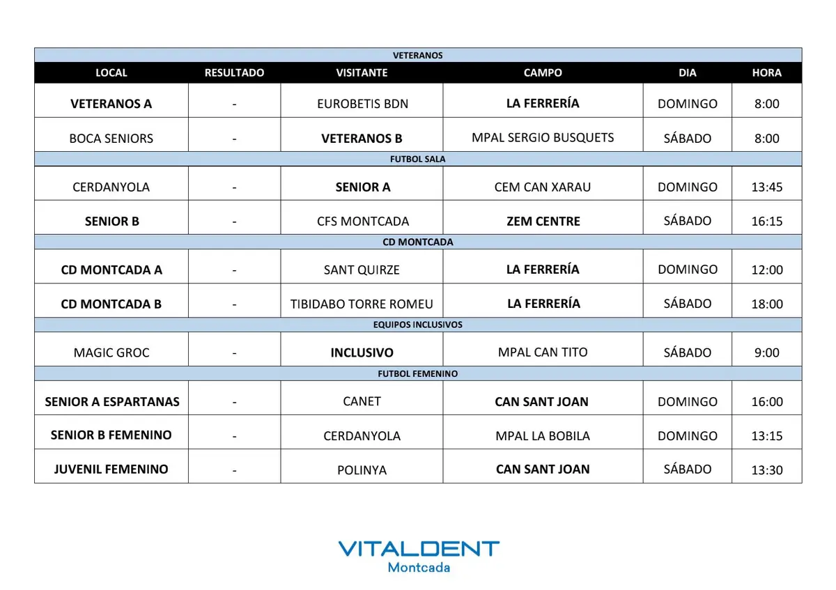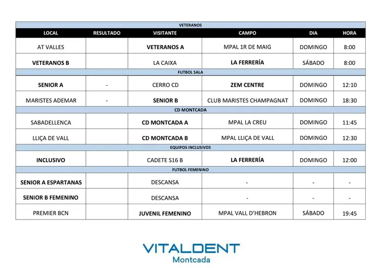 Vitaldent Montcada patrocina los partidos de este fin de semana del 1 y 2 de noviembre.