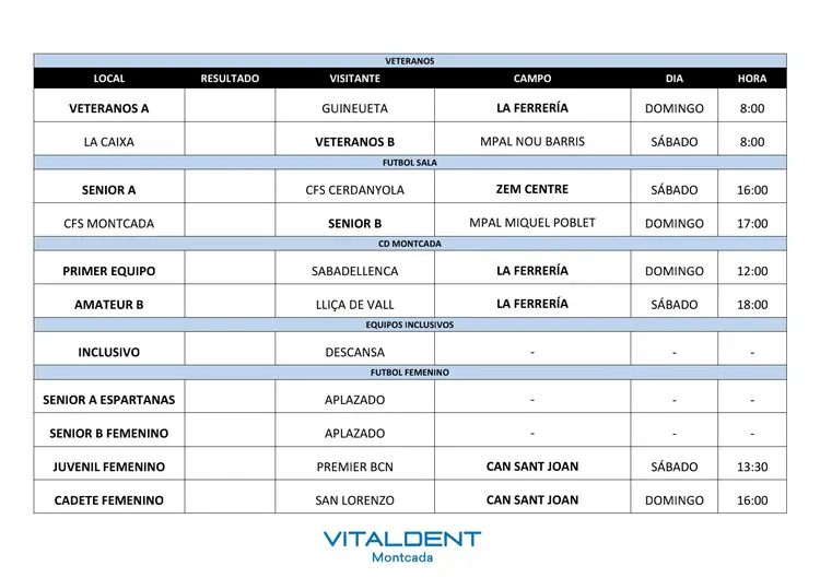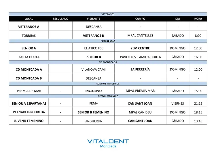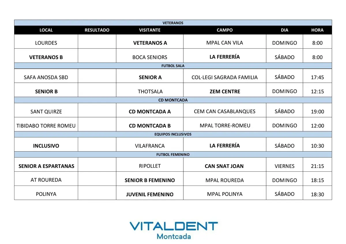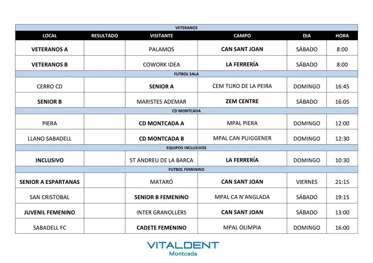 ⚽ Vitaldent Montcada patrocina los partidos de este fin de semana del 14 y 15 de marzo.
