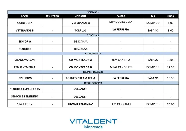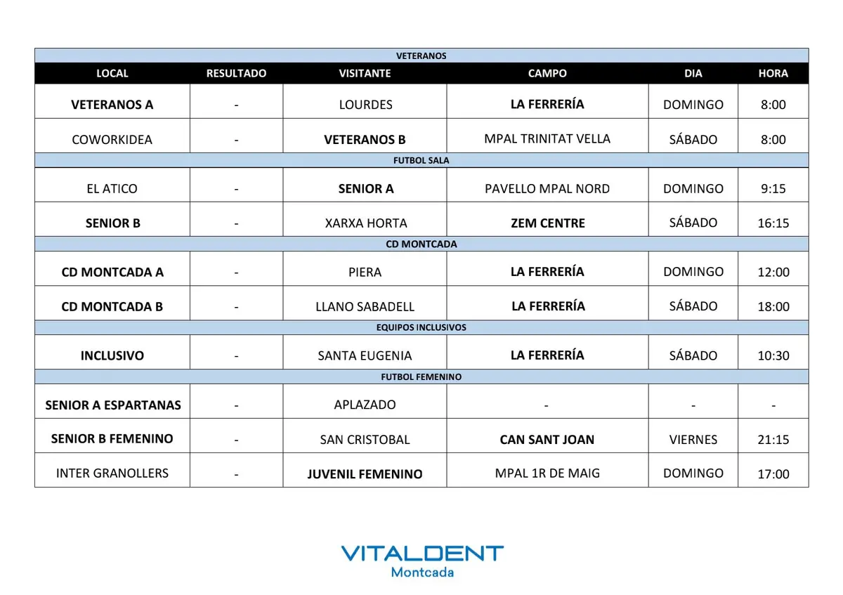 Vitaldent Montcada patrocina los partidos de este fin de semana del 18 y 19 de octubre.