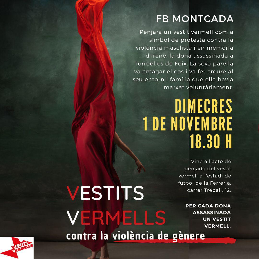 Durante nuestra Presentación 23/24, colgaremos un #vestitvermell contra la violencia machista y en memoria de Irene, mujer asesinada en Torroelles de Foix.